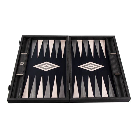 This backgammon is handmade using the art of marquetry (also spelled as marqueterie) which is the art and craft of applying pieces of veneer to a structure to form decorative patterns and designs.