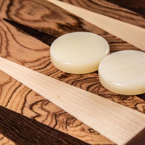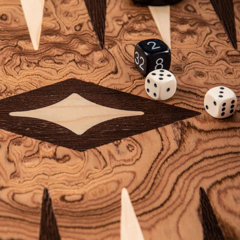 Premium Walnut Burl & wenge points Backgammon Set ( no side tracks) 30x20cm